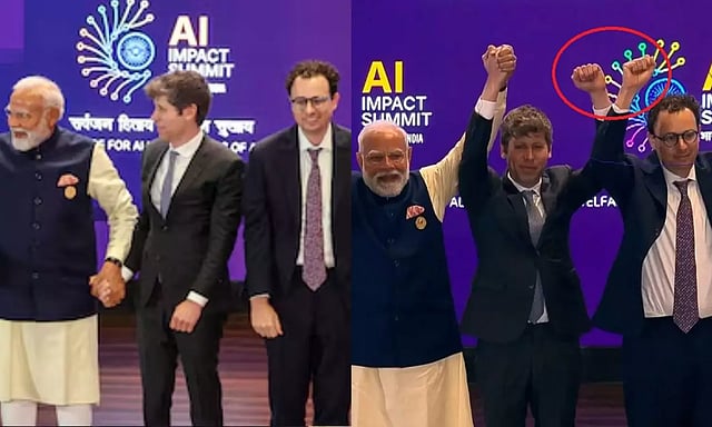 குழு புகைப்படத்தின் போது, OpenAI சிஇஓ சாம் ஆல்ட்மேன் மற்றும் Anthropic சிஇஓ டேரியோ அமோடி ஆகிய இருவரும் பிரதமர் மோடிக்கு இடதுபுறம் அருகருகே நின்று கொண்டிருந்தனர்.