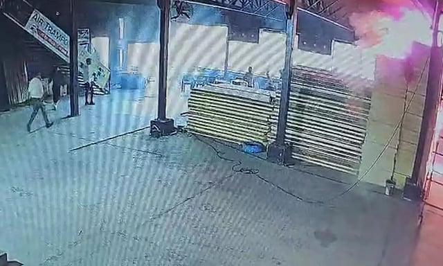 விளையாட்டு மைதானத்தில் ஏற்பட்ட தீ விபத்தின் சிசிடிவி காட்சி சமூக வளைத்தளங்களில் வைரலாகி வருகிறது. அதில், வளாகத்தின் மேற்கூரையில் வெல்டிங் செய்துக் கொண்டிருந்தபோது ஏற்பட்ட தீப்பொறியால் தீப்பிடித்ததைக் காட்டுகிறது.