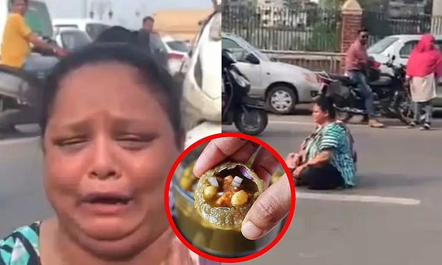 பானிபூரி கொடுக்காததால் கோபமடைந்த பெண் நடுரோட்டில் அமர்ந்து போராட்டத்தில் ஈடுபட்டார். இதனால் அப்பகுதியில் போக்குவரத்து நெரிசல் ஏற்பட்டது. பின்னர் போலீசார் அப்பெண்ணை அப்புறப்படுத்தினர்.