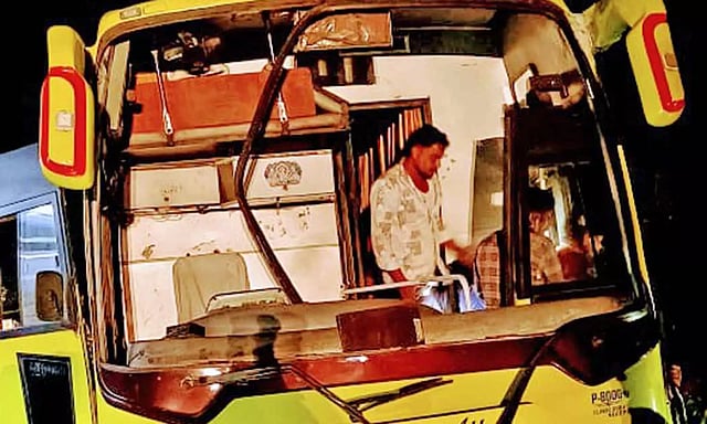 ராமேஸ்வரம் பகுதியில் இருந்து தனியார் பஸ் சுமார் 40 பயணிகளை ஏற்றுக் கொண்டு சென்னையை நோக்கி சென்று கொண்டிருந்தது.
