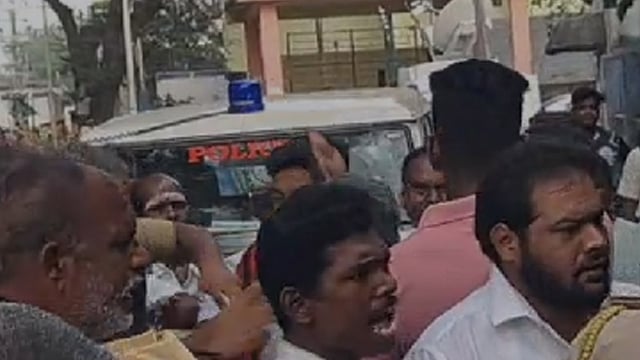 இங்கு பா.ஜ.க.வினர் அதிகளவில் திரண்டு இருந்தனர். இதனால் அங்கு வந்த காங்கிரஸ் கட்சியினர், எதற்காக நீங்கள் இங்கு திரண்டு இருக்கிறீர்கள். வாக்காளர் மட்டும் தான் இருக்க வேண்டும் மற்றவர் இருக்கக்கூடாது என்று பா.ஜ.க.வினரிடம் தெரிவித்தனர். இதனால் இரு தரப்பு இடையே வாக்குவாதம் ஏற்பட்டது. வாக்குவாதம் மோதலாக மாறி இருதரப்பினரும் ஒருவரையொருவர் தாக்க தொடங்கினார்.