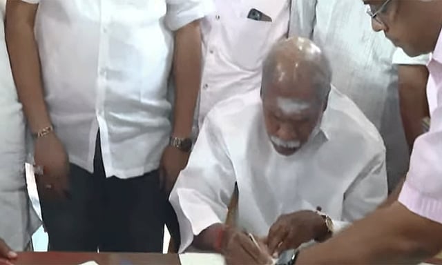 தட்டாஞ்சாவடி மற்றும் மங்கலம் சட்டசபை தொகுதியில் போட்டியிடுவதற்காக அவர் வேட்புமனு தாக்கல் செய்தார்.