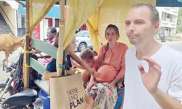 இவர்கள் பயணிப்பது ஏசி காரோ, விலை உயர்ந்த மோட்டார் சைக்கிளோ கிடையாது. நமது பாரம்பரிய ரிக்சாதான். ஆரோவில் ஆட்டோமொபைல் பணிமனையில் வேலை செய்யும் செர்க்கே வடிவமைத்த கூரை போட்ட ரிக்சாவில் தான் குடும்பமே பயணிக்கிறது.