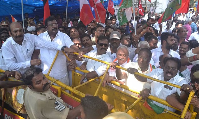 தொடர்ந்து போராட்டத்தில் ஈடுபட்ட இந்தியா கூட்டணி கட்சியினரையும் போலீசார் கைது செய்தனர். வைத்திலிங்கம் எம்பி, முன்னாள் முதலமைச்சர் நாராயணசாமி, எதிர்கட்சித் தலைவர் சிவா, தி.மு.க., காங்கிரசை சேர்ந்த 4 எம்.எல்.ஏ.க்கள் உட்பட நூற்றுக்கணக்கானவர்களை போலீசார் கைது செய்தனர்.