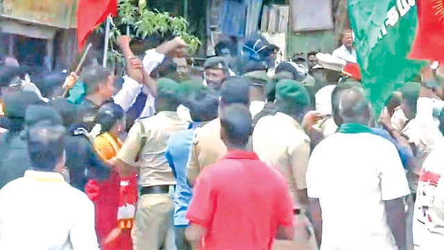 இதை போலீசார் தடுத்தனர். அப்போது சீமான், ‘நம் கட்சி தொண்டர்கள் அறிவார்ந்தவர்கள், த.வெ.க. கட்சியினர் தற்குறிகள், நீங்கள் போராளியின் பிள்ளைகள், அவர்கள் கோமாளியின் பிள்ளைகள்’ என்று தொண்டர்களை சீமான் சமாதானப்படுத்தினார். இதனால் அங்கு சிறிது நேரம் பரபரப்பு ஏற்பட்டது.