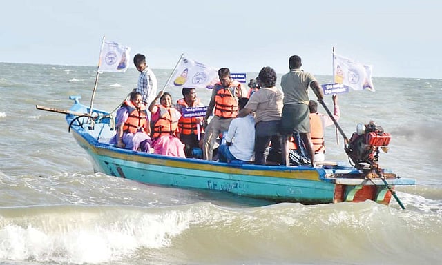 மேலும் படகு மூலம் புதுப்பட்டினம் கடலில் சென்று மீனவர்கள் 100 சதவீதம் வாக்குப்பதிவு செய்ய வலியுறுத்தி விழிப்புணர்வு ஏற்படுத்தும் நிகழ்ச்சி நடைபெற்றது. இதில் கலெக்டர் பிரியங்கா பங்கஜம் மற்றும் அலுவலர்கள் படகில் ஏறி கைகளில் விழிப்புணர்வு பதாகைகளை பிடித்தபடி சென்று மீனவர்களிடம் தேர்தலில் கட்டாயம் வாக்களித்து ஜனநாயக கடமையை நிறைவேற்ற வேண்டும் என்று அறிவுறுத்தினர்.