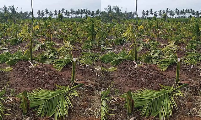 கடந்த சில வாரங்களுக்கு முன்பு புதுப்பாளையம் பகுதியில் முருகேசன் என்பவருக்கு சொந்தமான வாழை தோப்பில் புகுந்த மர்ம நபர்கள் அங்கிருந்த சுமார் 600-க்கும் மேற்பட்ட வாழை மற்றும் பாக்கு மரங்களை வெட்டி சாய்த்தனர்.