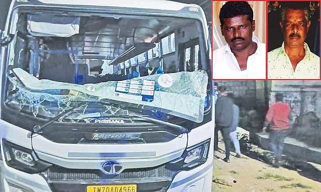 கெலமங்கலம் அருகே மோட்டார் சைக்கிள் மீது தனியார் நிறுவன வாகனம் மோதி ஊராட்சி மன்ற கவுன்சிலரின் கணவர் உள்பட 2 பேர் உயிரிழந்தனர். தகவலறிந்த பொதுமக்கள் 10 பஸ்களை அடித்து நொறுக்கியதால் பரபரப்பு ஏற்பட்டது.