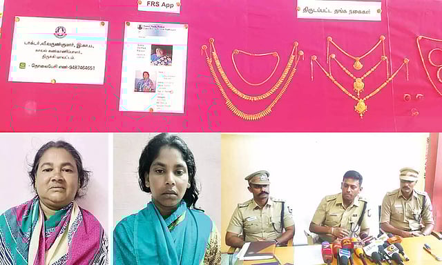 பின்னர் சமயபுரம் பகுதியில் சந்தேகத்திற்கு இடமாக நின்ற இரு பெண்களை தனிப்படையினர் மடக்கி பிடித்தனர்.