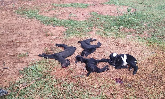 அங்கு குட்டிகளை எடுத்து வைத்திருக்கும் குடில்களை தள்ளிவிட்டு, அதிலிருந்து ஆட்டு குட்டிகளை தும்பிக்கையால் தாக்கிய போது 3 ஆட்டு குட்டிகள் பலியானது.