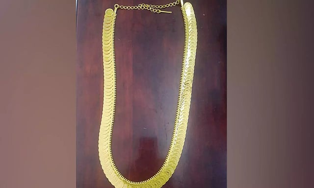 இந்த காசு மாலை நேற்று காலை பூஜையின் போது சிவகாமி அம்மனுக்கு பொது தீட்சிதர்களால் அணிவிக்கப்பட்டது.
