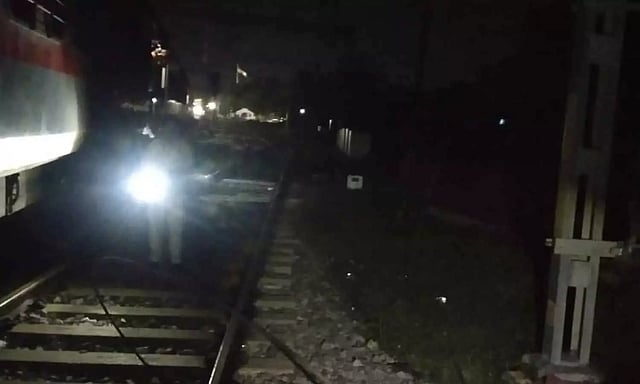 இதனால் சந்தேகம் அடைந்த ரெயில் என்ஜின் டிரைவர் இறங்கி தண்டவாளப் பாதையில் சென்று பார்த்த போது உயர் மின்னழுத்த ஒயர் அறுந்து துண்டாகி தண்டவாளத்தில் விழுந்து கிடந்தது.