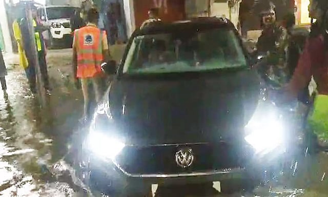 இது குறித்து தகவலறிந்த திருப்பூர் வடக்கு தீயணைப்பு நிலைய அதிகாரி வீரராஜ் சுப்பையா தலைமையில் தீயணைப்புத்துறை அதிகாரிகள் சம்பவ இடத்திற்கு விரைந்து சென்று, காருக்குள் இருந்த 4 பேரையும் பாதுகாப்பாக மீட்டனர். பின்னர் மழைநீரில் தத்தளித்து கொண்டிருந்த காரையும் தீயணைப்புத்துறையினர் பத்திரமாக அப்புறப்படுத்தினர்.