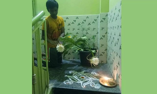 இதை பார்த்து, அவ்வீட்டினர் மகிழ்ச்சி அடைந்தனர். இந்த பூக்கள் மலரும் போது, என்ன வேண்டினாலும் நடக்கும் என்பது ஐதீகம். எனவே அவரது குடும்பத்தினர், பூக்களுக்கு பூஜை செய்து வேண்டி கொண்டனர்.
