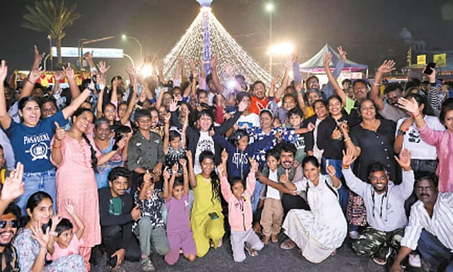 போலீஸ் டி.ஜி.பி. அலுவலகம் எதிரே உள்ள மணிக்கூண்டின் கடிகார முள் 12 மணியை தொட்டவுடன், 'ஹாப்பி நியூ இயர்' என்று வாழ்த்து கோஷங்களை எழுப்பியும், 'கேக்' வெட்டியும் மக்கள் மகிழ்ச்சி ஆரவாரத்துடன் புத்தாண்டை வரவேற்றனர்.