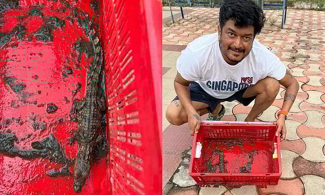 இதையடுத்து பாலாஜி தங்கவேல் இன்று காலை நீச்சல் குளத்தில் இருந்த தண்ணீரை வெளியேற்றி சுத்தம் செய்யும் பணியில் ஈடுபட்டார். அப்போது நீச்சல் குளத்திற்குள் ஒன்றரை அடி நீளம் உள்ள முதலைகுட்டி இருப்பதை கண்டு அதிர்ச்சி அடைந்தார்.
