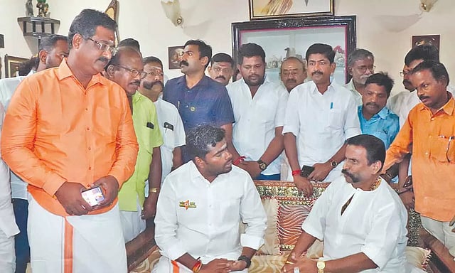 அவருக்கு கிருஷ்ணசாமி வாண்டையார் ஏலக்காய் மாலை அணிவித்து வரவேற்றார். அப்போது அண்ணாமலையும் கிருஷ்ணசாமி வாண்டையாருக்கு சால்வை அணிவித்து உடல் நலம் குறித்து விசாரித்தார்.