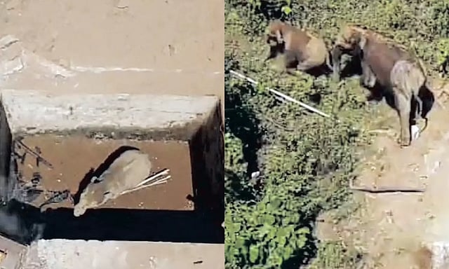 அப்போது அந்த யானைகள் 12 அடி ஆழ தரைமட்ட குடிநீர் தொட்டியில் துதிக்கையை உள்ளே விட்டு தண்ணீர் குடித்தன. அதேபோல குட்டி யானையும் துதிக்கையை உள்ளேவிட்டு தண்ணீர் குடிக்க முயன்றது.