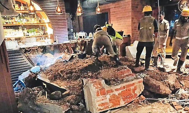 இந்த கேளிக்கை விடுதியின் மேற்கூரை திடீரென்று இடிந்து விழுந்தது. குண்டு வெடித்தது போன்று சத்தம் கேட்டதால் கேளிக்கை விடுதிக்கு வந்திருந்த வாடிக்கையாளர்களும், ஊழியர்களும் அலறியடித்து ஓட்டம் பிடித்து வெளியேற முயன்றுள்ளனர். எனினும் கட்டிட இடிபாடுகளில் 5-க்கும் மேற்பட்ட நபர்கள் சிக்கி கொண்டதாக தெரிகிறது.