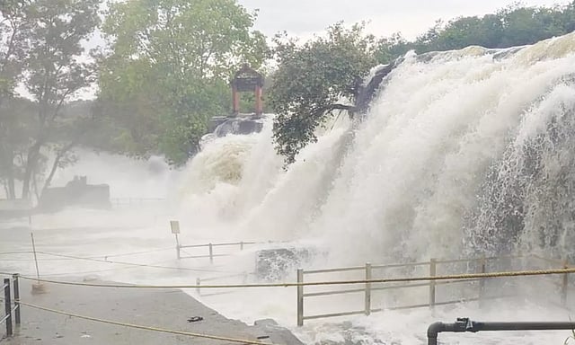 கோதையாற்றில் ஏற்பட்ட வெள்ளப்பெருக்கின் காரணமாக திற்பரப்பு அருவியில் தண்ணீர் ஆர்ப்பரித்து கொட்டி வருகிறது. கடந்த சில நாட்களாக சுற்றுலா பயணிகள் அருவியில் குளிப்பதற்கு அனுமதிக்கப்பட்டிருந்த நிலையில் இன்று மீண்டும் குளிக்க தடை நீடிக்கப்பட்டுள்ளது. பேரூராட்சி நிர்வாகம் சார்பில் அதற்கான அறிவிப்பு பலகை வைக்கப்பட்டுள்ளது. மழைக்கு மாவட்டம் முழுவதும் 2 ஆயிரத்திற்கும் மேற்பட்ட குளங்கள் முழு கொள்ளளவை எட்டி நிரம்பி வழிகிறது.