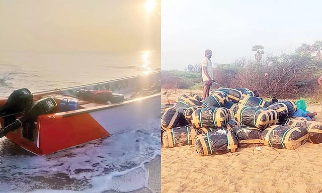 இன்று அதிகாலை 3.30 மணிக்கு ஆள் நடமாட்டம் இல்லாத கடற்கரையில் மர்ம பொருள் பண்டல்களுடன் கும்பலாக சிலர் நின்றுள்ளனர். படகு ஒன்றும் தனியாக நின்று கொண்டிருந்தது. உடனே விரைந்து செயல்பட்ட போலீசார் அந்த கும்பலை சுற்றி வளைக்க முயன்றனர்.