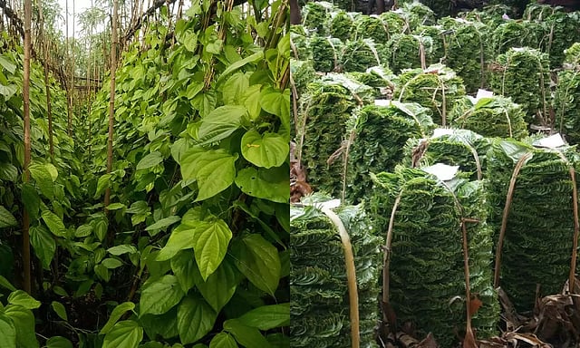 வெற்றிலை பறிக்கும் தருவாய்க்கு வரும்போது கூலி ஆட்கள் மூலம் வெற்றிலைகளை பறித்து 100 வெற்றிலைகள் கொண்ட ஒரு கவுளியாகவும், பின்னர் 104 கவுளி கொண்ட ஒரு சுமையாகவும் கட்டுகின்றனர்.