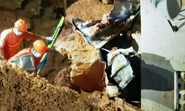 போலீசார் மற்றும் வருவாய் துறை அதிகாரிகள் தீயணைப்பு துறையினர் மீட்பு பணியில் ஈடுபட்டனர். மீட்பு படை வீரர்கள் 30-க்கும் மேற்பட்டோர் மற்றும் 50-க்கும் மேற்பட்ட போலீசார் தீயணைப்பு துறையினர் எந்திர உதவியுடன் மீட்பு பணிகளில் ஈடுபட்டனர். இன்று காலையில் தொடர்ந்து மீட்பு பணி நடந்தது.