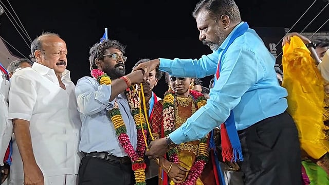அப்போது சங்கர், தனக்கு இந்த மேடையில் திருமணம் செய்து வைக்குமாறு திருமாவளவனிடம் கேட்டுக்கொண்டார். அந்த தொண்டரின் வேண்டுகோளை ஏற்று திருமாவளவன், மணமக்களுக்கு திருமாங்கல்யத்தை எடுத்து கொடுத்து திருமணத்தை நடத்தி வைத்தார். அதன் பின்னர் மணமக்களுக்கு அச்சதை தூவி வாழ்த்தினார்.