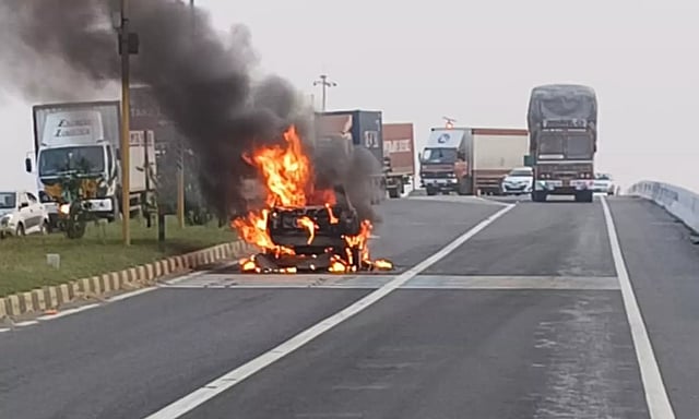 சேலம்-சென்னை பிரதான தேசிய நெடுஞ்சாலையில் இன்று அதிகாலை ஓடும் கார் தீப்பிடித்து எரிந்த சம்பவம் பரபரப்பை ஏற்படுத்தியது.