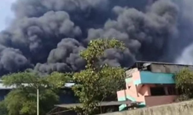 பெயிண்ட் குடோனில் ஏற்பட்ட தீயினால் அப்பகுதி முழுவதும் கரும்புகை சூழ்ந்தது. தீயணைப்புத் துறையினருக்குத் தகவல் அளிக்கப்பட்டது.