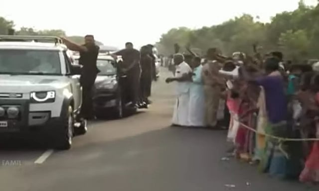 காரில் அரிட்டாப்பட்டி செல்லும் முதலமைச்சர் மு.க.ஸ்டாலினுக்கு சாலையில் திரண்டு நின்று பொது மக்கள் உற்சாக வரவேற்பு அளித்து வருகின்றனர்.