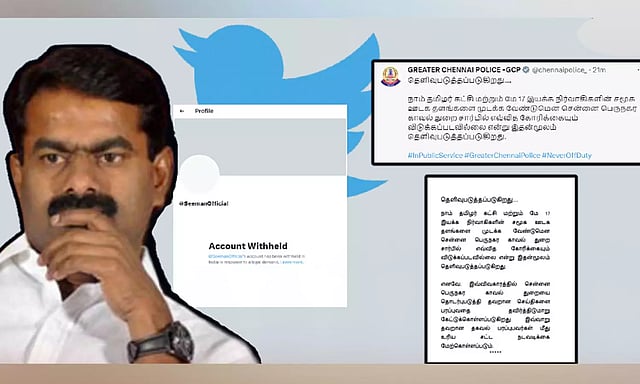 இந்நிலையில், சீமானின் டுவிட்டர் கணக்கு முடக்கப்பட்டது தொடர்பாக சென்னை பெருநகர காவல்துறை விளக்கம் அளித்துள்ளது. டுவிட்டர் பக்கத்தில் கூறப்பட்டுள்ளதாவது:-