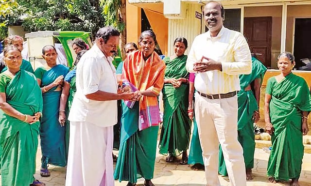 நாகை மாவட்டம் கீழ்வேளூர் பேரூராட்சி அலுவலகத்தில் தூய்மை பணியாளராக பணியாற்றி வருபவர் சிந்தாமணி. இவர் நேற்று காலை அங்கு உள்ள சிவாஜி நகரில் வீடுகளில் இருந்து குப்பைகளை சேகரித்து பேரூராட்சி அலுவலக வளாகத்துக்கு கொண்டு வந்து மக்கும் குப்பை, மக்காத குப்பை என தரம் பிரிக்கும் பணியில் ஈடுபட்டு இருந்தார்.