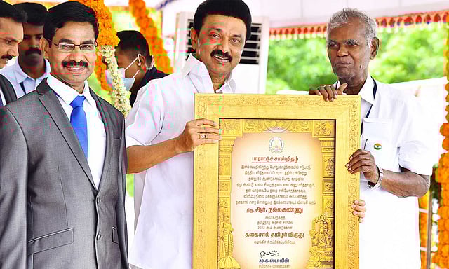 இந்திய கம்யூனிஸ்டு மூத்த தலைவர் நல்லகண்ணுவுக்கு தகைசால் தமிழர் விருது வழங்கப்படும் என ஏற்கனவே தமிழக அரசு அறிவித்து இருந்தது.