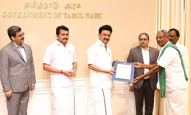 முதலமைச்சர் மு.க.ஸ்டாலின் இன்று (புதன்கிழமை) தலைமைச் செயலகத்தில், எரிசக்தித் துறையின் கீழ் செயல்படும் தமிழ்நாடு மின் உற்பத்தி மற்றும் பகிர்மானக் கழகத்தின் வாயிலாக நடப்பாண்டில் இலவச மின்சாரம் வழங்கப்பட்ட 50,000 விவசாய பயனாளர்களில் 50,000-வது பயனாளி உள்பட 5 நபர்களுக்கு மின் இணைப்பு ஆணைகளை வழங்கினார்.