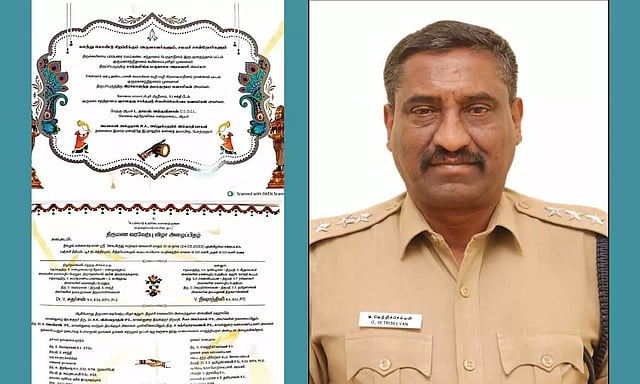 கோவையில் மும்மதங்களைச் சேர்ந்த குருமார்கள் முன்னிலையில் தனது மகளுக்கு திருமணம் செய்து வைக்கும் போலீஸ் டி.எஸ்.பி. வீட்டு திருமண அழைப்பிதழ் சமூக ஊடகங்களில் வைரலாக பரவி வருகிறது.