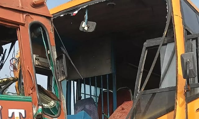 இதில் கல்லூரி பஸ்சில் வந்த மாணவிகள், 2 டிரைவர்கள் உள்பட 20-க்கும் மேற்பட்டோர் படுகாயம் அடைந்தனர்.
