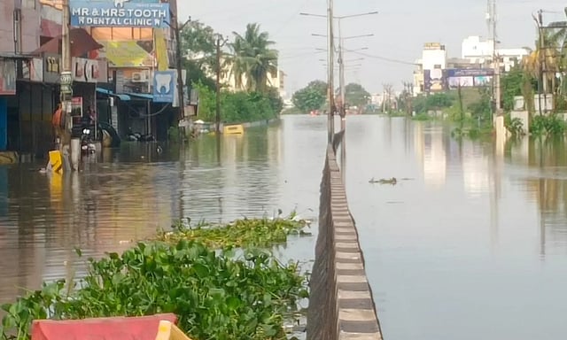 வெளியூர்களில் இருந்தும் வரவழைக்கப்பட்டுள்ள தூய்மை பணியாளர்கள் தண்ணீர் வடிந்த பகுதிகளில் மட்டும் குப்பைகளை அகற்றும் பணியில் ஈடுபட்டுள்ளார்கள்.
