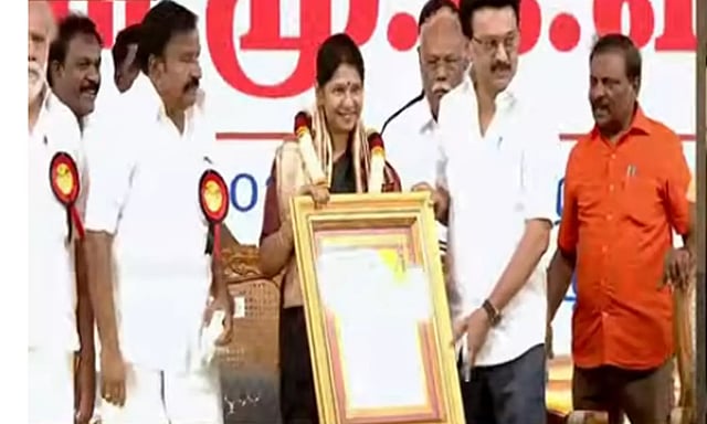 இவ்விழாவில், கனிமொழி எம்பிக்கு முதலமைச்சர் மு.க.ஸ்டாலின் பெரியார் விருது வழங்கி கவுரவித்தார்.