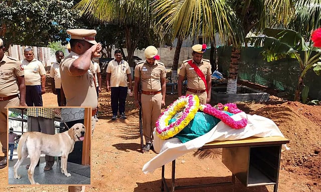 அப்போது மோப்பநாய் ராஜாவுக்கு 30 குண்டுகள் முழங்க இறுதி மரியாதை செலுத்தப்பட்டது. பின்னர் சூலூர் போலீஸ் நிலையத்தில் உள்ள துப்பறியும் மோப்ப நாய் பிரிவு வளாகத்தில் அடக்கம் செய்யப்பட்டது.