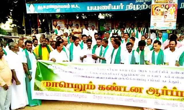 ஆர்ப்பாட்டத்தில் பல்வேறு அமைப்புகள், விவசாயிகள், அரசியல் கட்சிகள் கலந்துகொண்டு, தமிழகத்திற்கு தண்ணீர் தர மறுக்கும் கர்நாடக அரசுக்கு எதிராக கண்டன கோஷங்கள் எழுப்பி முழக்கமிட்டனர்.