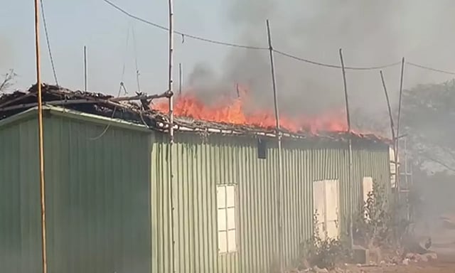 இந்நிலையில், அரங்கத்தின் அருகில் இருந்த பணியாளர்கள் தங்கும் பகுதியில் திடீரென தீ விபத்து ஏற்பட்டது.