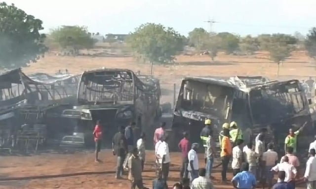 இந்த தீ விபத்தில் 20 மேற்பட்ட பேருந்து கூடுகள் தீயில் கருகி நாசமானது. தகவல் அறிந்து விரைந்து வந்த தீயணைப்பு வீரர்கள் தீயைக் கட்டுக்குள் கொண்டுவந்தனர்.