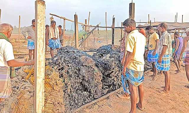 தடுப்பு, கம்பு, இறால் வலை ஆகியவற்றை பாதுகாப்பாக வைத்துவிட்டு வீட்டிற்கு சென்றனர்.