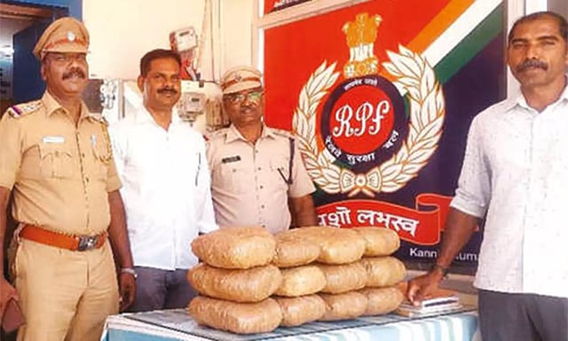 அப்போது முன்பதிவு அல்லாத பெட்டி ஒன்றில் இருக்கைக்கு கீழே ஒரு டிராலி பேக் கிடந்தது. இதைப்பார்த்த போலீசார் உடனே பேக்கை திறந்து பார்த்தனர். அப்போது அதில் 12 பொட்டலங்கள் கஞ்சா இருந்தன.இதைத் தொடர்ந்து அவற்றை போலீசார் பறிமுதல் செய்தனர். அந்த வகையில் 12 கிலோ கஞ்சா பறிமுதல் செய்யப்பட்டது.