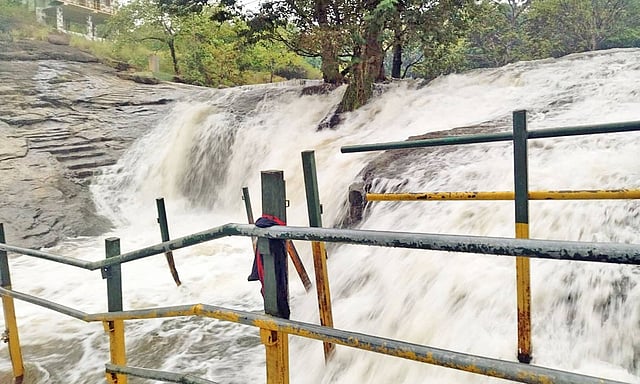 கன மழை காரணமாக பெரியகுளம் அருகில் உள்ள கும்பக்கரை அருவியில் வெள்ளப்பெருக்கு ஏற்பட்டுள்ளது. வனத்துறை கட்டுப்பாட்டில் உள்ள இந்த அருவிக்கு கடந்த ஒரு வாரத்திற்கு மேலாக ஏராளமான சுற்றுலா பயணிகள் குடும்பத்துடனும், நண்பர்களுடனும் வந்து குளித்து மகிழ்ந்து சென்றனர். தற்போது தேனி மாவட்டத்துக்கு கன மழை எச்சரிக்கை விடுக்கப்பட்டுள்ளதாலும், அருவியில் தண்ணீர் ஆர்ப்பரித்து கொட்டுவதாலும் சுற்றுலா பயணிகள் குளிக்க தடை விதிக்கப்பட்டுள்ளது. மறு உத்தரவு வரும் வரை இந்த தடை தொடரும் என அறிவிக்கப்பட்டுள்ளது.
