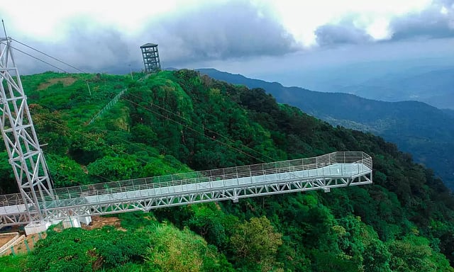 ரூ.3 கோடி மதிப்பில் கடல் மட்டத்தில் இருந்து 3600 அடி உயரத்தில் 120 அடி நீளத்தில் கட்டப்பட்டுள்ள இந்த பாலம் ஜெர்மனியில் இருந்து இறக்குமதி செய்யப்பட்ட கண்ணாடியால் உருவாக்கப்பட்டுள்ளது. 35 டன் இரும்பு பயன்படுத்தி கட்டப்பட்ட இந்த பாலத்தில் ஒரே நேரத்தில் 15 பேர் ஏறி நின்று சுற்றுவட்டார பகுதியான முண்டகயம், கூட்டிக்கல், கொக்கையாறு பகுதிகளை கண்டு ரசிக்கலாம். மேலும் இந்த சாகச பூங்காவில் ஸ்கைசுவிங், ஸ்கை சைக்கிளிங், ஸ்கைரோலர், ராக்கெட் எஜெக்டர், பீரிபால், ராட்சத ஸ்விங், ஜிப்லைன் உள்ளிட்டவை சுற்றுலா பயணிகளை கவரும் வண்ணம் ஏற்பாடு செய்துள்ளனர்.