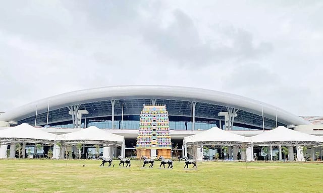 விழாவுக்காக விமான நிலையத்தில் பிரமாண்டமான மேடை அமைக்கப்ட்டு வருகிறது. திருச்சி விமான நிலையத்தில் 4 அடுக்கு பாதுகாப்பு போடப்பட்டு உள்ளது. நுழைவு வாயிலில் மத்திய தொழில் பாதுகாப்பு படையினர் மோப்பநாய் உதவியுடன் விமான நிலையத்திற்கு வரும் வாகனங்களை சோதனை செய்து பின்னர் உள்ளே அனுப்புகின்றனர்.