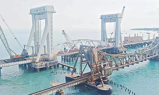 ராமநாதபுரம் மாவட்டம் மண்டபத்தையும், ராமேசுவரம் தீவையும் இணைக்கும் வகையில் பாம்பன் கடலில் ரூ.550 கோடி மதிப்பில் புதிய ரெயில் பாலம் கட்டும் பணி இறுதி கட்டத்தை எட்டியுள்ளது.