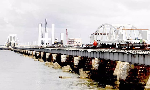 இதில் மண்டபத்தில் இருந்து பாலத்தின் மையப் பகுதி வரை ரெயில் தண்டவாளங்கள் முழுமையாக அமைக்கப்பட்டுள்ளது. பாம்பனில் இருந்து மையப் பகுதி வரை பணிகள் நடைபெற்று வருகிறது. இதில் கப்பல்கள் வந்து செல்லும் வகையில் மையப்பகுதியில் அமைக்கப்படும் தூக்கி இறக்கும் பாலம் 600 டன் எடை உள்ளதால் கொண்டு செல்லும் பணி நடைபெற்று வருகிறது. இன்னும் 10 நாட்களுக்குள் அந்த பணி நிறைவடைந்து அதிக குதிரை திறன்கொண்ட மின் மோட்டர் மூலம் தூக்கி இறக்கிடும் வகையில் இணைப்புகள் பொருத்தப்பட்டு அதற்கான பணிகள் நடைபெறும்.